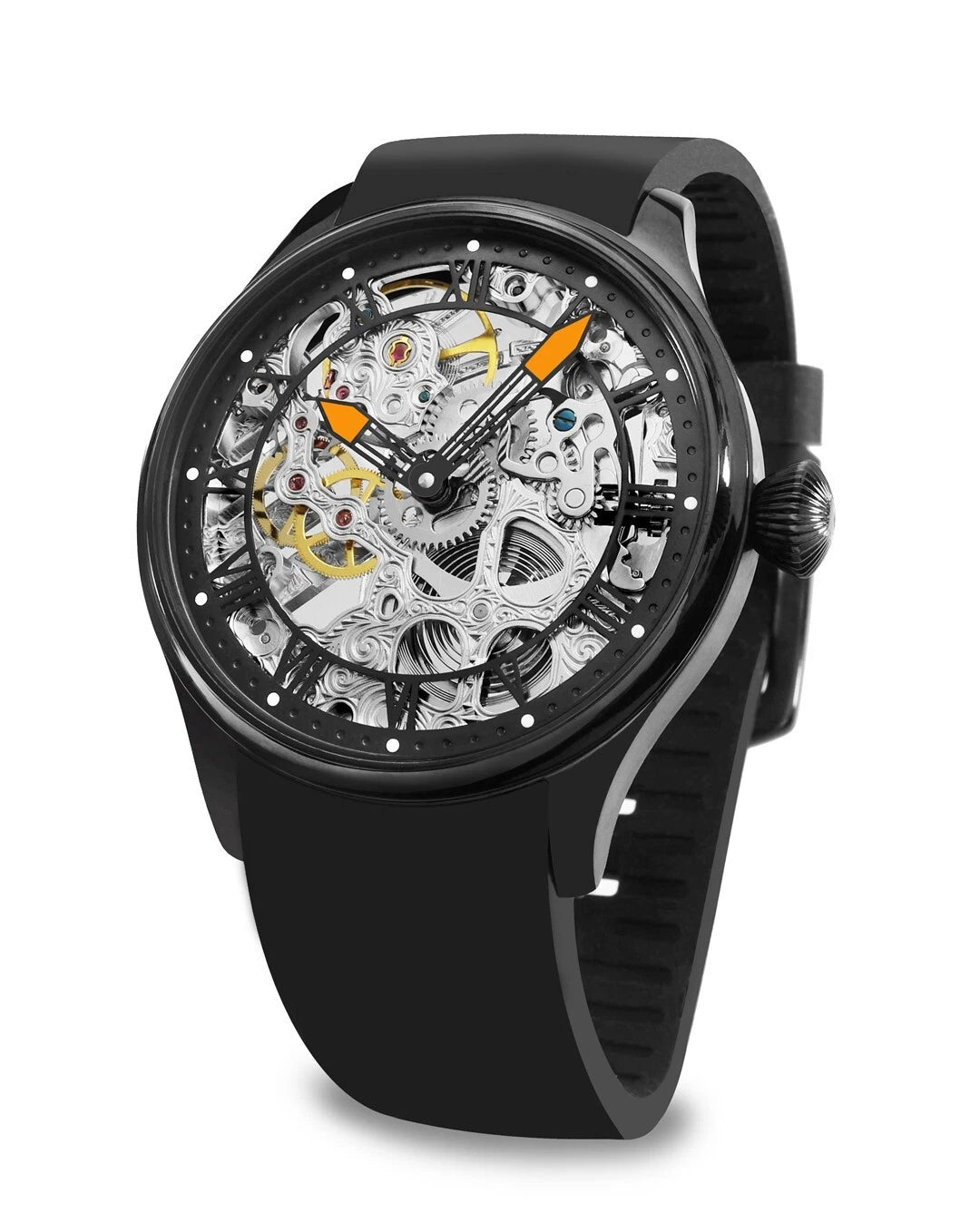 - Quadrante scheletrato ore Romane , nero opaco.