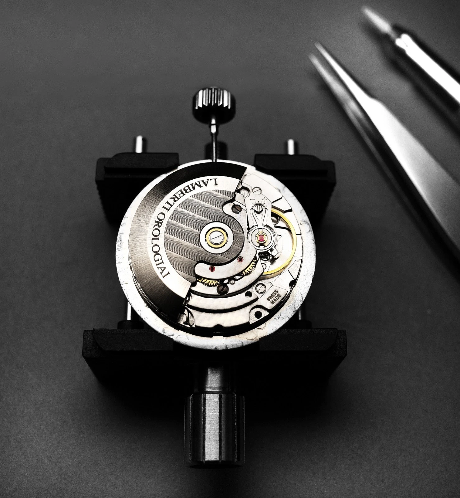 - Movimento ad alta precisione assemblato e regolato a mano in laboratorio